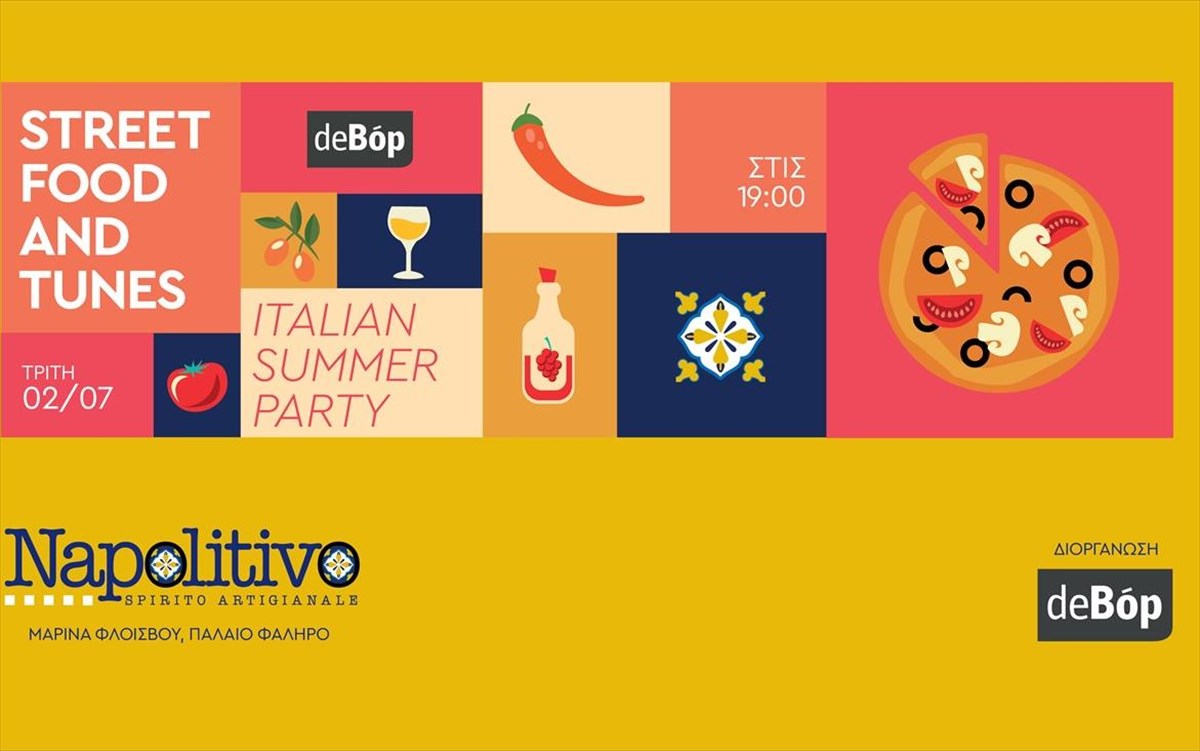 Έπειτα από απουσία πολλών μηνών, τα Street Food and Tunes επιστρέφουν την πρώτη Τρίτη του Ιουλίου με ένα Italian style party δίπλα στο κύμα που θα σηματοδοτήσει την έναρξη του καλοκαιριού με τον πιο ανέμελο τρόπο, με… διακτινισμό στην Ιταλία μέσω του Napolitivo στη Μαρίνα Φλοίσβου.