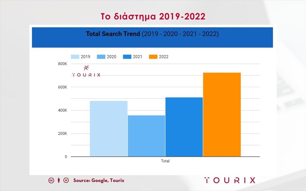 Υψηλό το ενδιαφέρον για wine tours και wine tasting στην Ελλάδα φάνηκε να είναι το 2022, όπως αυτό αποτυπώθηκε από τις αναζητήσεις χρηστών στην πλατφόρμα της Google. Σύμφωνα με την έρευνα της Tourix, το 2022 ειχαμε αύξηση κατά 41% των αναζητήσεων συνολικά σε σχέση με το 2021 και παρόμοια αύξηση κατά 42% των αναζητήσεων για το α΄τρίμηνο του 2023 σε σχέση με το α΄ τρίμηνο του 2022.