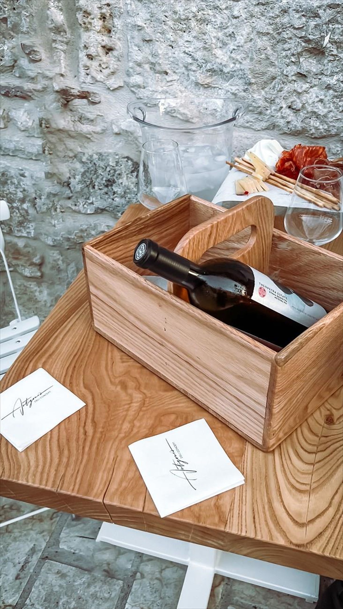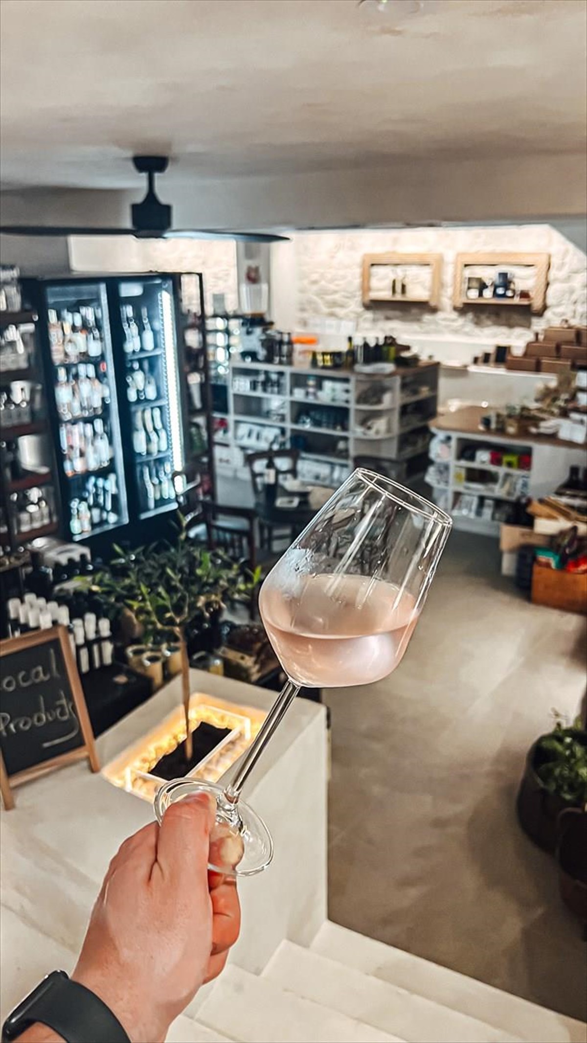 Από το Antigoni’s Deli Concept δεν θα μπορούσε να λείπει και η οινική εμπειρία, γι’ αυτό και υπάρχει μια πολύ καλά μελετημένη κάβα με κρασιά επί το πλείστον από ελληνικούς αμπελώνες, αλλά και λίγες διεθνείς ετικέτες, όλα επιλεγμένα για να τα απολαμβάνετε με κάποιο σνακ ή τυριά και αλλαντικά. Μετά τις 6 το απόγευμα, μάλιστα, που η θερμοκρασία εξωτερικά του μαγαζιού πέφτει, θα βρείτε και τραπεζάκια στο πλακόστρωτο για να απολαύσετε το κρασί σας με ποικιλία τυριών και αλλαντικών από τον πάγκο.