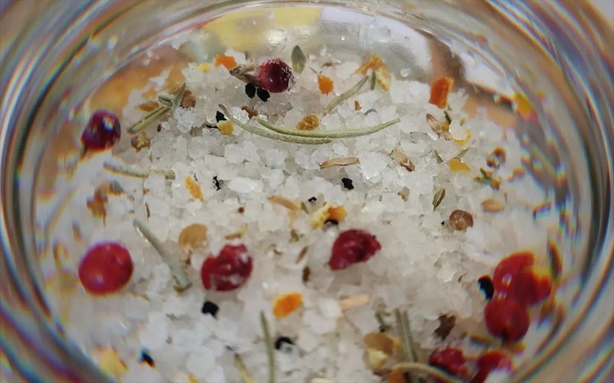 Στο μοσχομυριστό παρασκευαστήριο σας περιμένει πλήθος από μείγματα μαγειρικής, με σπόρους, βότανα, ανθό αλατιού και ξύσματα, το καθένα για συγκεκριμένα πιάτα και γεύσεις, σάλτσες και τσάτνεϊ όπως σάλτσα γλυκιάς ντομάτας με καπνιστή επίγευση και γλυκόξινο ζελέ με γλυκές πιπεριές Φλωρίνης και 3 διαφορετικές ποικιλίες τσίλι, ανθός αλατιού σκέτος αλλά και με μυρωδικά και εσπεριδοειδή, 3 διαφορετικά είδη τσαγιού, όπως και διάφορα μείγματα για να απογειώσετε τις συνταγές σας για τζατζίκι, τυροκαυτερή, τις σαλάτες σας και πολλά ακόμη. Κι επειδή έρχονται και Χριστούγεννα και το mulled wine έχει την τιμητική του, φτιάξτε το δικό σας εύκολα με το μείγμα μπαχαρικών και εσπεριδοειδών της κυρίας Έφης που θα μοσχοβολήσει σε όλο το σπίτι.