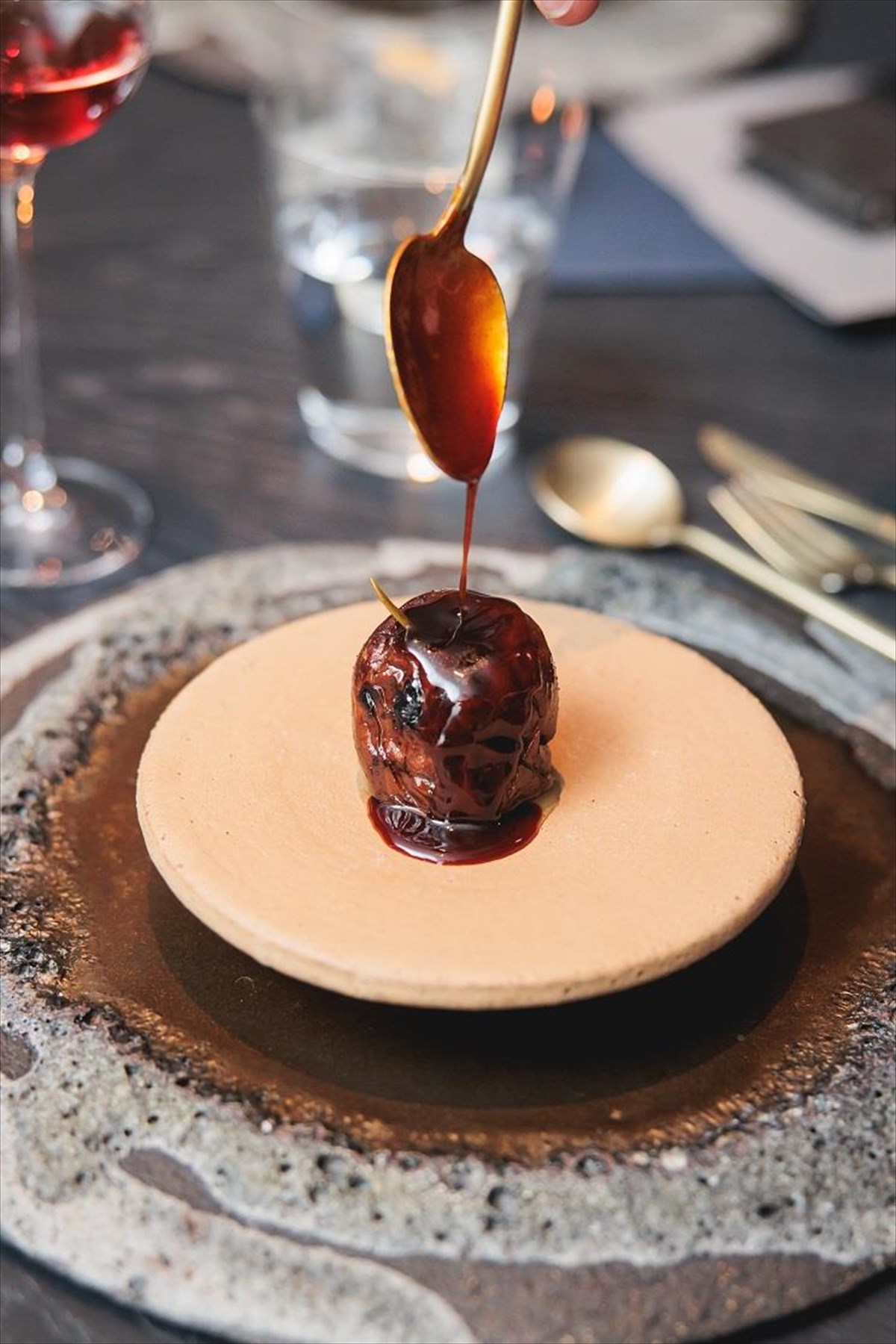 Zak_ViemonΚι από τον αστακό πάμε σε μπακαλιάρο, στον καλύτερο κατά τη γνώμη μας συνδυασμό πιάτου-κοκτέιλ της βραδιάς, που αν τον αποδομήσουμε είναι μπακαλιάρος με τσίπουρο, αλλά στην πραγματικότητα είναι ένας μακρινός συγγενής αυτού του πιάτου από τα «ξένα». Σε μια έκρηξη γεύσεων, λοιπόν, απολαύσαμε αρωματισμένο μπακαλιάρο με άνθη μανταρινιού, μαζί με ένα «αυγό» με περίβλημα από χτένια που στο εσωτερικό του έκρυβε ψητά μύδια, όλο σε ένα πορτοκαλί χρώμα από καρότο που έχει υποστεί ζύμωση, σε μια σάλτσα με βάση το δαμάσκηνο, με αχιβάδα και κρέμα γάλακτος. Κι όλο αυτό το συνονθύλευμα γεύσεων, αρωμάτων και υφών ταίριαξε ιδανικά με ένα κοκτέιλ βασισμένο στο νέας γενιάς τσίπουρο opurist με οινοποιημένο ρύζι, σόδα με γιαούρτι και καρύδα και για γαρνιτούρα ένα τσιπ γάλακτος αρωματισμένο με καρύδι, το οποίο έβγαζε μια τροπική σπιρτάδα λόγω της καρύδας, αλλά αποτέλεσε σίγουρα το «έτερον ήμισυ» του πιάτου.
