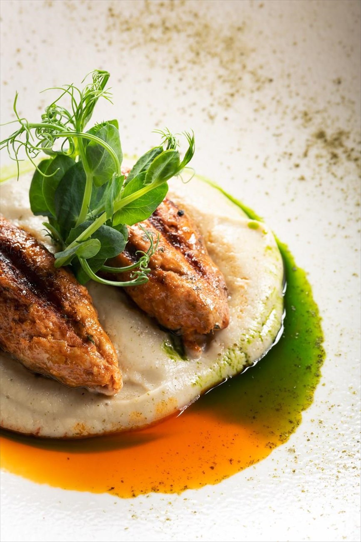 Ενδεικτικά να σας πούμε ότι στο μενού του θα βρείτε στρείδια με απολαυστική μπεσαμέλ chorizo, περουβιανά folders, δηλαδή τραγανά φύλλα από tortilla γεμισμένα με μοσχάρι και απολαυστικά δροσερή σως Pico de Gallo, ιαπωνικά μοσχαρίσια tsukune με σως από καπνιστή μελιτζάνα που παραπέμπει σε χουνκιάρ μπεγιεντί και πρωτότυπα gyoza, γεμιστά με ιβηρικό χοιρινό σε κρέμα πράσο και αφρό αυγολέμονο. Από τις σαλάτες ξεχωρίζει αυτή με τα king oyster μανιτάρια, πίκλες αγριοράπανου και σάλτσα από φιστίκι Αιγίνης.