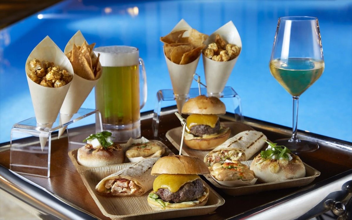 Την κινηματογραφική απόλαυση συμπληρώνει, όπως έχουμε πια συνηθίσει, μια γαστρονομική εμπειρία υψηλού επιπέδου, με την υπογραφή των έμπειρων σεφ του Ξενοδοχείου. Συνοδεύοντας ιδανικά ένα χαλαρωτικό ποτό δίπλα από την πισίνα, το ατομικό σετ μενού με fingerfood περιλαμβάνει κλασικά πιάτα που θυμίζουν σινεμά: Φρεσκοψημένο pop corn με θαλασσινό αλάτι, οργανικά nachos με χειροποίητο τραγανό φύλλο τορτίγιας από κίτρινο καλαμπόκι, λαχταριστά taco με φύλλα μαρουλιού ή γαρίδα tempura, mini cheeseburger με ζουμερό μπιφτέκι από μοσχάρι Black Angus, αλλά και δροσιστικό παγωτό θα δώσουν διαφορετική γεύση, σε κάθε λεπτό προβολής. Ανακαλύψτε το μενού εδώ.