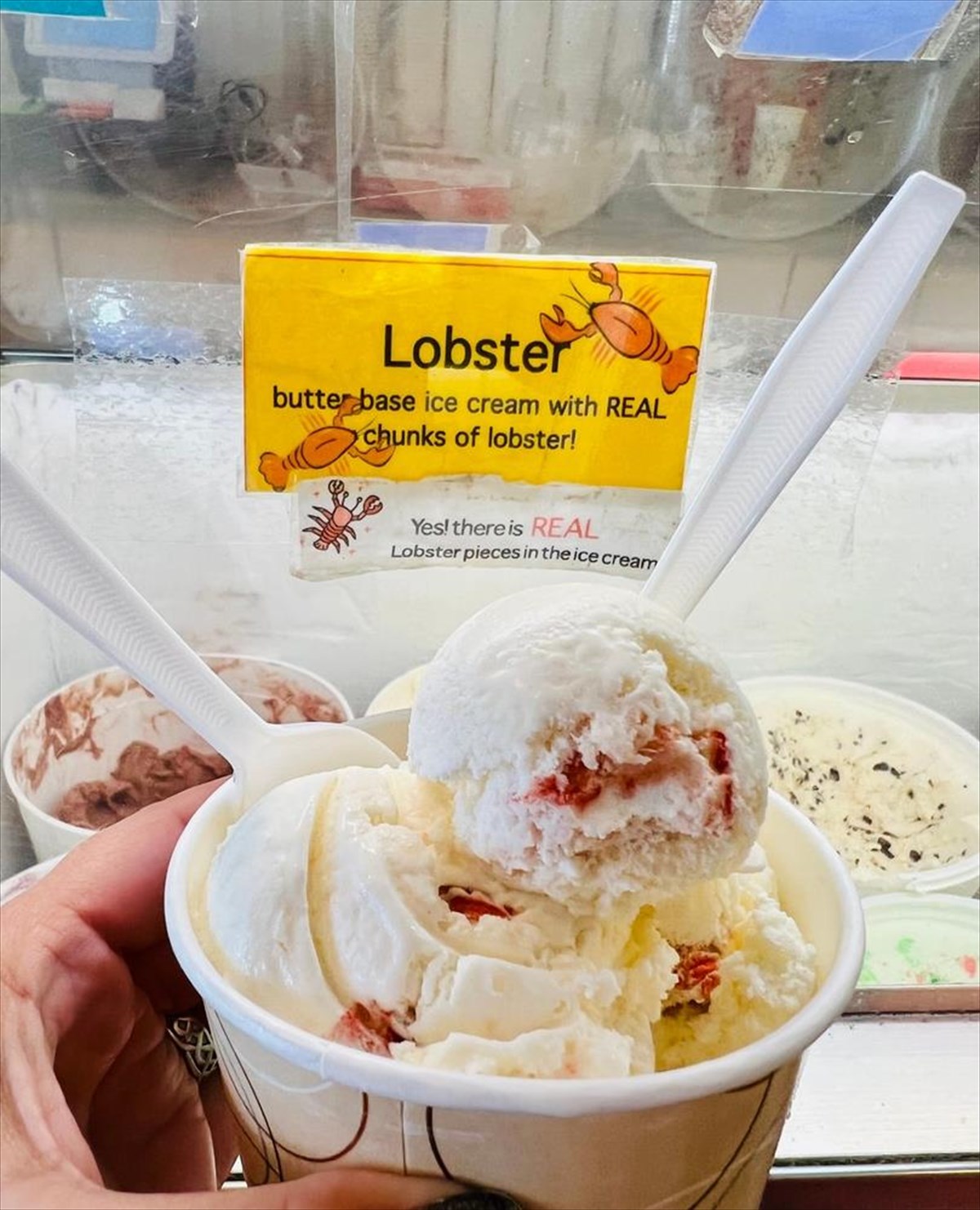 Παγωτό με θαλασσινά; Κι όμως. Η ομάδα του Ben & Bill's Chocolate Emporium στη Μασαχουσέτη και το Μέιν πιστώνεται ευρέως τη δημιουργία αυτής της γεύσης και η τοποθεσία της δεν θα μπορούσε να είναι πιο κατάλληλη. Ως μια περιοχή που φημίζεται για τον αστακό και τα μύδια, πού θα μπορούσε να συνδυαστεί καλύτερα ο φρέσκος αστακός του Ατλαντικού με το βουτυρένιο παγωτό βανίλια; Χρησιμοποιούν, μάλιστα, κομματάκια αστακού για να κάνουν πιο εντυπωσιακό το αποτέλεσμα.