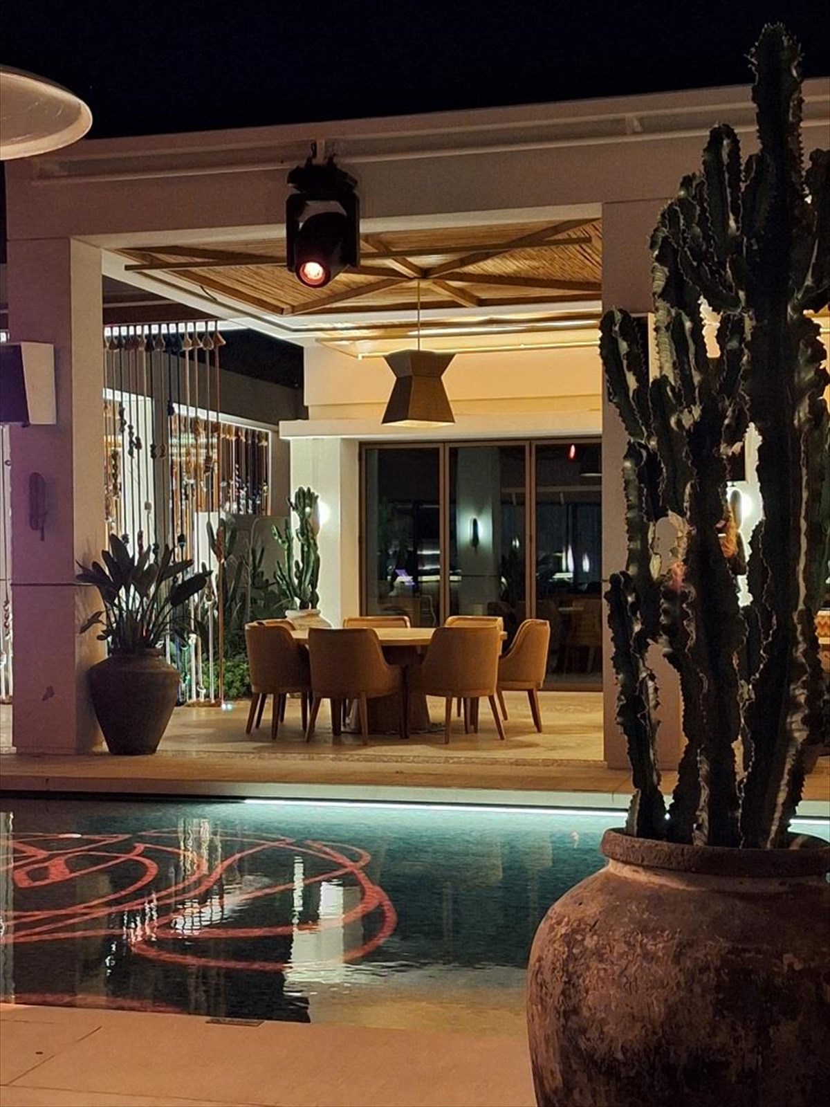 Διάχυτη boho και έθνικ αισθητική με την υπογραφή των MVP Architectes και το Bureau Lacroix, φυτά, φυσικά υλικά και υγρό στοιχείο είναι τα χαρακτηριστικά που θα τραβήξουν το μάτι στην πρώτη επαφή, καθώς θα διασχίζετε το μονοπάτι πάνω στο νερό μέχρι να βρείτε τη δική σας «γωνιά» στη σάλα, μπροστά στην πισίνα ή με θέα τη θάλασσα.
