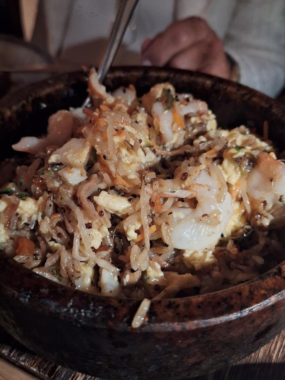 κουζίνα του Περού με κινέζικες επιρροές, κάτι που μεταφράζεται στο αντίθετο του μίνιμαλ: πολλές και διαφορετικές γεύσεις και υφές, ένα γαστρονομικό «μπέρδεμα» που σερβίρεται σε ένα ζεστό πέτρινο πιάτο. Μετρήστε υλικά: Τηγανητό ρύζι ως βάση, με χοιρινό, λαχανικά, γαρίδες, νουντλς και τηγανητό αυγό που το ανακατεύουν μπροστά σας. Η τελική γεύση ήταν λιγότερο χαοτική απ΄ όσο ακούγεται, ωστόσο ο μαξιμαλισμός του πιάτου παρέμενε σε ένα βαθμό, «μπερδεύοντας» τον ουρανίσκο.
