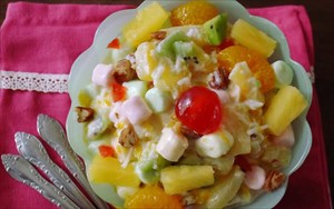Μια φρουτοσαλάτα, που λίγο μοιάζει με τη φρουτοσαλάτα που έχουμε συνηθίσει είναι εκείνη της Αμβροσίας. Χρησιμοποιείστε εσπεριδοειδή της περιόδου, όπως πορτοκάλι και γκρέιπφρουτ, αβοκάντο, σέλινο, αγγούρια, μπανάνες, φράουλες, ακόμα και φιστίκια. Μερικές εκδοχές περιλαμβάνουν στα υλικά και καρύδα για το γαρνίρισμα ενώ πολλοί είναι εκείνοι που στη βασική συνταγή προσθέτουν και σαντιγί ή τυρί-κρέμα.