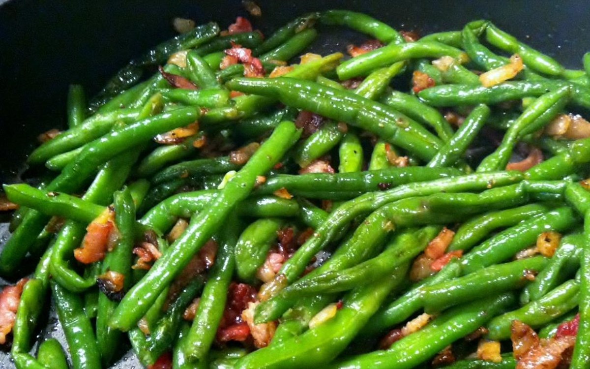Τα φασολάκια που στην Ελλάδα τα τρώμε σε εβδομαδιαία βάση, στην άλλη άκρη του Ατλαντικού τα προτιμούν για το γιορτινό τους τραπέζι. Βράστε τα φασόλια σε μια μεγάλη κατσαρόλα με νερό. Σε ένα κατσαρολάκι, λιώστε λίγο βούτυρο και σωτάρετε τα βρασμένα φασολάκια μαζί με λίγο σκόρδο και μοσχοκάρυδο.