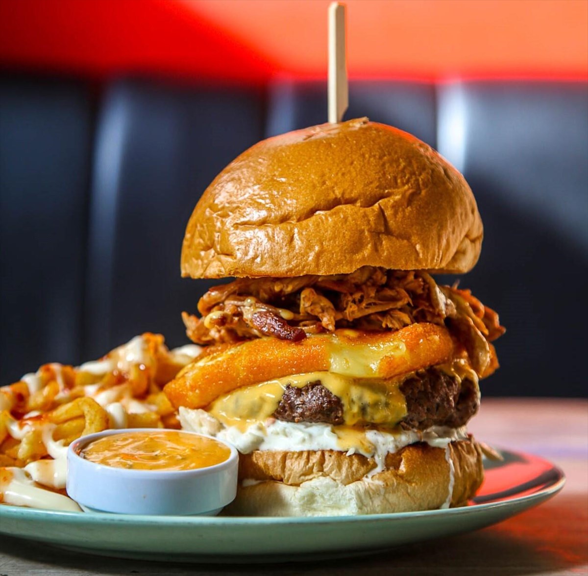 - ΠΑΤΑΤΑΚ, ένα burger-υπερπαραγωγή με τρία smashed μοσχαρίσια μπιφτέκια 100g, λιωμένο cheddar, μπέικον, cheddar sauce, μαγιονέζα, πούδρα crispy bacon και τραγανές τηγανητές πατάτες στο ψωμάκι