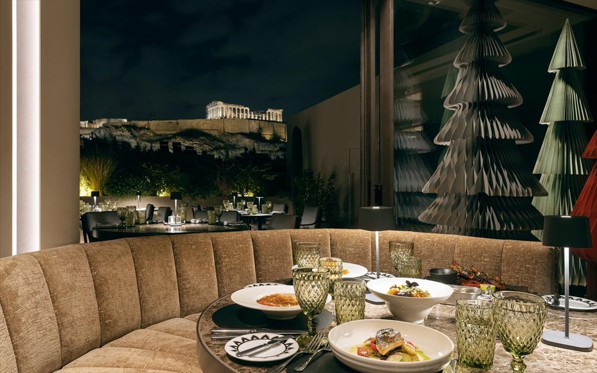 Το βραβευμένο ως Καλύτερο Hotel Restaurant της Ελλάδας, το μοναδικό Acropolis Secret στο rooftop του Divani Palace Acropolis, γιορτάζει φέτος για πρώτη φορά, έχοντας ανασχεδιαστεί καθολικά από το καλοκαίρι ώστε να το απολαμβάνουμε στο εξής και το χειμώνα. Με εκλεπτυσμένο στολισμό σε πλήρη αρμονία με το minimal design του και, δίνοντας έμφαση στην εκπληκτική θέα που προσφέρει περιφερειακά αλλά και μέσα από τη γυάλινη οροφή του, θα είναι το place-to-be για τις γιορτές. Απολαύστε μενού κορυφαίας γαστρονομίας την Παραμονή της Πρωτοχρονιάς με ζωντανή μουσική καθώς και εορταστικά brunch ανήμερα Χριστουγέννων και Πρωτοχρονιάς (160 ευρώ/άτομο, 80 για παιδιά). Συγκεκριμένα, την Παραμονή της Πρωτοχρονιάς το μενού ανέρχεται στα 300 ευρώ/άτομο (150 ευρώ για παιδιά) και περιλαμβάνει κολοκυθόσουπα με κρουτόν αστακού, σολομό μαριναρισμένο σε τσικουδιά και παντζάρι, wagyu με γαρίδες σε μια surf&turt επιλογή κυρίως και πολλά ακόμη. Και όλα αυτά πάντα με την καλύτερη θέα της πόλης, με την Ακρόπολη κυριολεκτικά στο πιάτο σας και με φόντο το Θέατρο Ηρώδη του Αττικού και το λόφο του Φιλοπάππου. Info: Παρθενώνος 19, Αθήνα, 210 9280100.