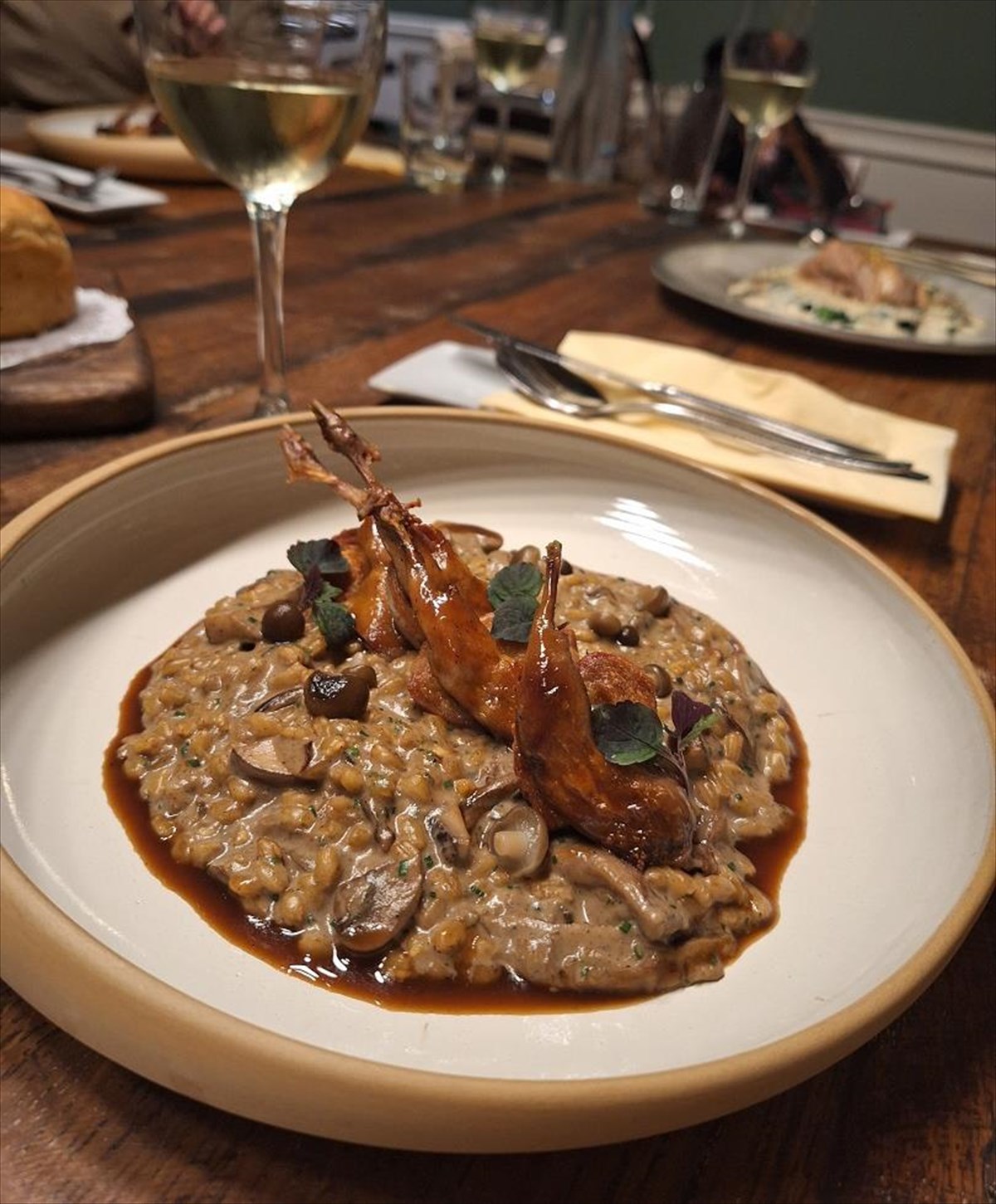 Το πιάτο με το ορτύκι είναι τόσο ιδιαίτερο όσο και η ιστορία του. Στη Μάνη επειδή πράγματι δεν είχαν πλούσια γη, το ορτύκι που έφερναν οι κυνηγοί από το πέρασμα συνοδευόταν με ψωμί και κάπως έτσι έβγαινε η καθημερινότητα. Πρόκειται για ένα πιάτο άμεσα συνυφασμένο με την κοινωνία της Μάνης, με τους «παλιούς» του τόπου να αναφέρονται σε αυτή την εποχή ακόμη και σήμερα. Στο νέο μενού, λοιπόν, το ορτύκι σερβίρεται σε μια αρκετά διαφορετική εκδοχή από αυτή που γνώρισαν οι παππούδες και οι γιαγιάδες της Μάνης, με σιτάρι, μανιτάρια, κρέμα τυρί, τρούφα και σάλτσα από τους χυμούς του. Δεν είναι εύκολο πιάτο για όσους δεν έχουν ξαναδοκιμάσει ορτύκι, με λιγοστό λίπος και ανοίκεια γεύση, ωστόσο σίγουρα φέρνει την λιτότητα της παραδοσιακής Μάνης σε ένα πιο λαμπερό σήμερα.