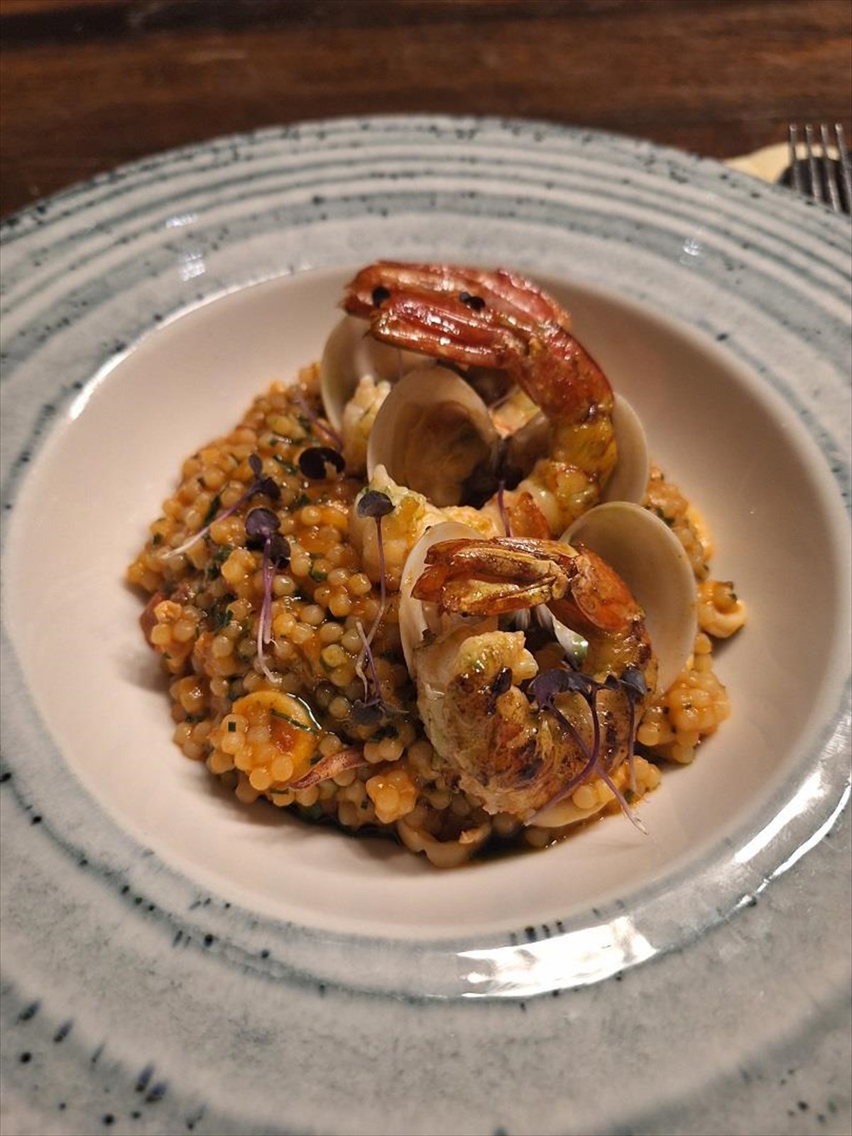 Στο μενού του ξεχωρίζουν οι νέες προσθήκες, ωστόσο δεν λείπουν και κάποια signature πιάτα στα οποία έχει πασπαλίσει τη δική του δημιουργικότητα ο νέος σεφ. Προτού ακόμα φτάσετε στα κυρίως, όμως, θα σας εντυπωσιάσει σίγουρα το χειροποίητο ψωμί που ζυμώνεται καθημερινά και ψήνεται με παραδοσιακές μεθόδους εδώ και 10 χρόνια. Εκτός από το βούτυρο ελαιολάδου και τις ελιές με τις οποίες θα το συνδυάσετε, φυλάξτε λίγο για να το απολαύσετε με την φάβα με καραμελωμένο κρεμμύδι, κάππαρη και λιαστή ντομάτα και την ταραμοσαλάτα με πέρλες λεμονιού και λάδι μυρωδικών που είναι πραγματικά εκπληκτικά αλείμματα σε γεύση και υφή. Κι αν πάρετε την τριλογία φάβα-ταραμοσαλάτα-τζατζίκι, ακόμα καλύτερα.