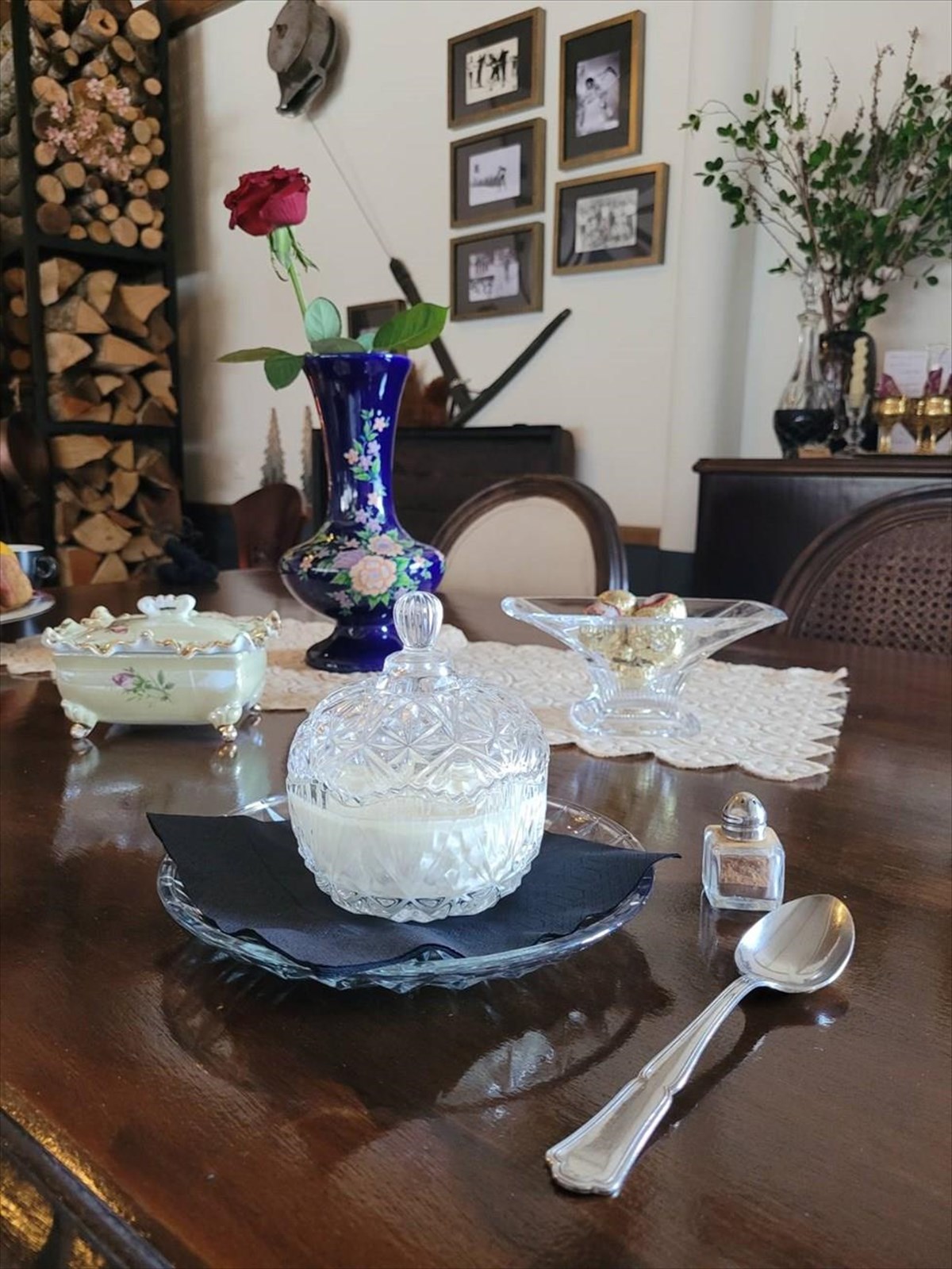 «Μαζί με τον σύζυγό μου Γιάννη, έπειτα από πολλά χρόνια εργαζόμενοι και οι δύο σε χιονοδρομικά κέντρα και με μια βαλίτσα στο χέρι (εγώ ως εκπαιδεύτρια σκι, ο Γιάννης ως τεχνικός στα lift) αποφασίσαμε να δραστηριοποιηθούμε στον τόπο που γεννήθηκα και πέρασα τα πιο όμορφα παιδικά μου χρόνια, στην Καστανιά! Έτσι λοιπόν ξεκινήσαμε να κάνουμε μόνοι μας εργασίες, σ’ ένα από τα πιο χαρακτηριστικά οικήματα του χωριού που βρίσκεται στην κεντρική πλατεία» μας εξηγεί η κυρία Ανδρεάδου. Η διακόσμηση είναι καθαρά προσωπική της δουλειά και τα περισσότερα υλικά τα έχει πάρει από το δάσος. Χαρακτηριστικό παράδειγμα είναι τα πανέμορφα φωτιστικά, που αποτελούν ρίζες από κέδρα που έχουν ξεραθεί στις κορυφές των βουνών. Τα έπιπλα είναι οικογενειακά κειμήλια και οι φωτογραφίες που στολίζουν τους τοίχους είναι από το οικογενειακό της άλμπουμ, βάζοντας το δικό τους λιθαράκι στη «ζεστασιά» του χώρου.