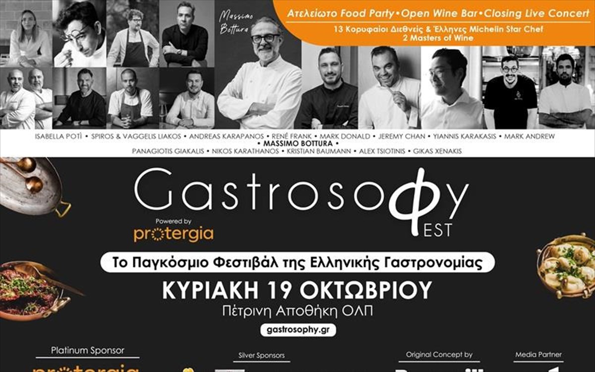 Σε μερικές ημέρες και πιο συγκεκριμένα στις 19 Οκτωβρίου, η Πέτρινη Αποθήκη ΟΛΠ μεταμορφώνεται σε έναν μοναδικό γαστρονομικό προορισμό, το GastrosoΦy Fest powered by Protergia, ένα φεστιβάλ που φέρνει σεφ από Ελλάδα και εξωτερικό, οινολόγους και δημιουργούς γύρω από ένα κοινό τραπέζι, γεφυρώνοντας την παγκόσμια γαστρονομία με τις αυθεντικές ελληνικές ρίζες.