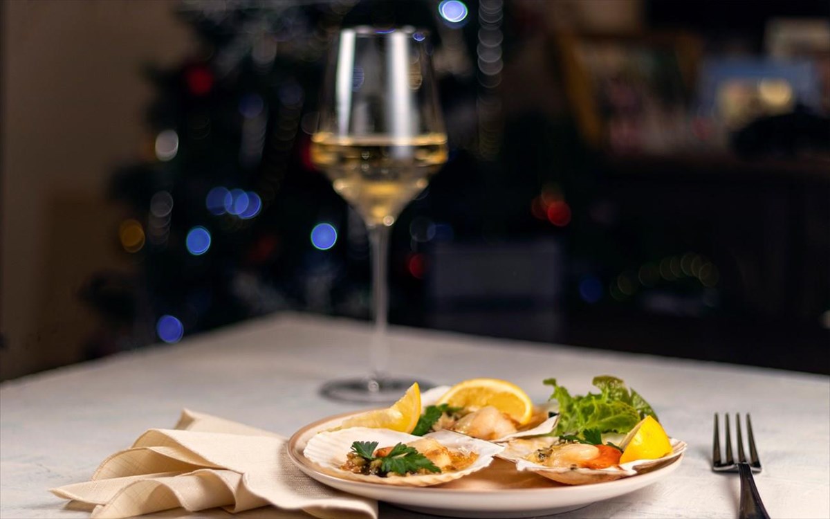 Διεθνής Αμπελώνας: Sauvignon Blanc (Νέα Ζηλανδία)/Τα αρώματα βοτάνων απογειώνουν τις ψητές γαρίδες με μυρωδικά.