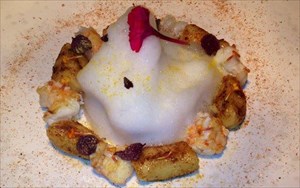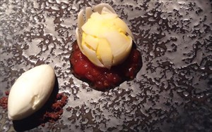 Η egg-stravagantza, όπως αποκαλεί ένα από τα καλύτερα πιάτα του, ήταν ένα «αυγό» από σουπιά γεμισμένο με το μελάνι της. Σερβίρεται σε μια φωλίτσα και συστήνεται να τρώγεται με μια μπουκιά. Είναι πεντανόστιμο και ευφάνταστο. Το σκουμπρί με μαριναρισμένες φακές και σορμπέ από μαύρο σουσάμι ήταν ένα πιάτο εμπνευσμένο από την Ινδία. Είχε αρκετά έντονη γεύση και προτείνεται στους φίλους του είδους.