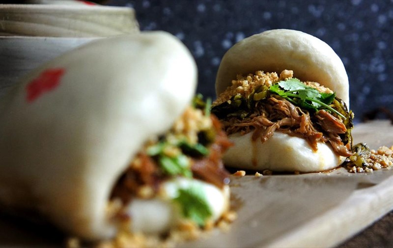 Πρόκειται για το ταϊβανέζικο χάμπουργκερ: ένα κουλούρι ψημένο στον ατμό περικλείει μια πλούσια γέμιση με κοκκινιστό χοιρινό, κινέζικο λάχανο τουρσί και φιστίκια σε σκόνη. Η γέμιση ψιλοκόβεται και ανακατεύεται έτσι ώστε να είναι ισόποσα μοιρασμένη σε κάθε μπουκιά. Αλμυρό, ξινό και γλυκό ταυτόχρονα, μπορεί να διδάξει πολλά στο δυτικό χάμπουργκερ.