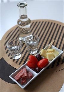 Αν επιλέξετε να πιείτε ρακή, συνοδέψτε τη με ένα εξαιρετικό χωριάτικο λουκάνικο Τρικάλων (5€) ή με εκλεκτά σαλάμια από όλη την Ελλάδα (8€). Η λιπαρότητα εξάλλου ταιριάζει άψογα με το αλκοόλ της ρακής.