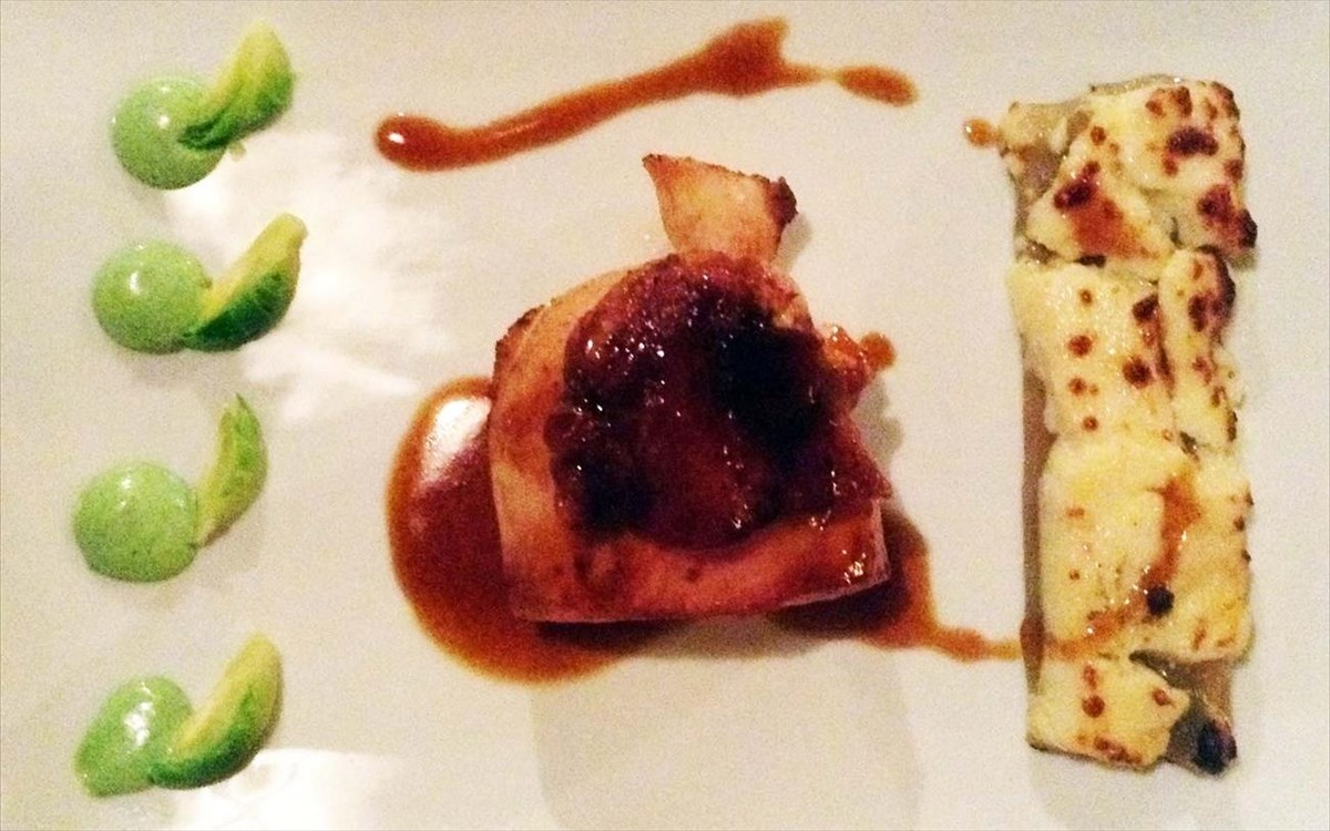 Οι εκπλήξεις όμως, δεν σταματούσαν μόνο στα ορεκτικά και τα κυρίως πιάτα, μιας και τα γλυκά ήταν πολύ ξεχωριστά. Μαντολάτο, Μήλο ή έναν πειρασμό λευκής και μαύρης σοκολάτας; Εδώ ήταν το πρόβλημα! Διαλέξαμε τελικά, το μήλο (7€) και δεύτερο γλυκό δεν χωρούσε… Έφτασε ένα πανέμορφο ορθογώνιο πιάτο, με έναν κύλινδρο μους μήλου τυλιγμένο σε «ζελατίνα» κανέλας, ένα κύβο «κέικ» μήλου, μια μπάλα αφρού μαστίχας και ένα σφαιρίδιο ρακόμελου. Εκτός από εντυπωσιακά πρωτότυπη σύνθεση κι εκτέλεση, το γλυκό σίγουρα, δεν ήταν μόνο για έναν. Για αυτό προνοήστε…