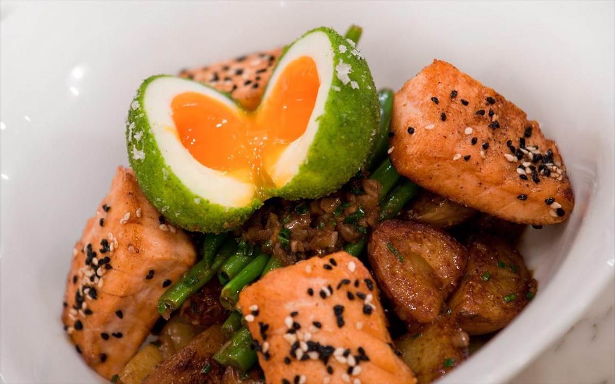Τα ψητά χτένια ταίριαζαν υπέροχα με τον πουρέ κουνουπιδιού και τη δροσιστική ξινίλα του αφρού από λεμόνι –ένα πιάτο σήμα κατατεθέν της γαλλικής γαστρονομίας- ενώ η ζεστή σαλάτα «Nicoise», με μεγάλα κομμάτια ψητού σολομού, φρέσκα πράσινα φασολάκια και πατάτες έδενε ιδανικά με το μελάτο αυγό σε κρούστα, που άνοιγε και περίχυνε με τον κρόκο του όλη τη σαλάτα.