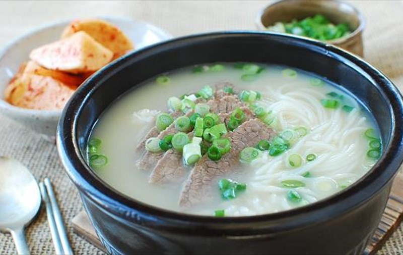Το seolleongtang είναι μια ιδιαίτερα δημοφιλής σούπα στην Κορέα και υπάρχουν ακόμη και εστιατόρια που ειδικεύονται αποκλειστικά σε αυτή. Από όλα τα φαγητά της λίστας, είναι το πιο χρονοβόρο γιατί θα πρέπει να βράσετε τα βοδινά κόκαλα για ώρες ώστε να απελευθερώσετε όλο το ασβέστιο που δίνει τη χαρακτηριστική λευκή εικόνα της σούπας.