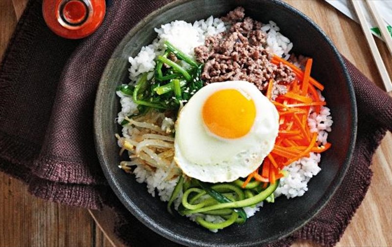 Στα κορεατικά «bibim» σημαίνει «ανάμικτο» και «bap» σημαίνει ρύζι. Όλα τα συστατικά εκτός από το κρέας (το οποίο είναι προαιρετικό) προετοιμάζονται εκ των προτέρων έτσι ώστε να μπορείτε να τα προσθέσετε σε θερμοκρασία δωματίου στην κορυφή του καυτού ρυζιού. Στη συνέχεια τηγανίζετε και προσθέτετε κρέας και ένα τηγανητό αυγό στην κορυφή. Το bibimbap συνήθως σερβίρεται με πικάντικη σάλτσα από gochujang (πάστα κορεάτικης καυτερής πιπεριάς).
