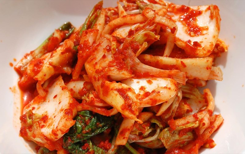 Το kimchi είναι το εθνικό πιάτο της Κορέας. Στην αρχή μπορεί να μη φαίνεται αρκετά ελκυστικό λόγω του ότι το λάχανο έχει υποστεί ζύμωση, αλλά σε αυτή την περίπτωση τα φαινόμενα απατούν. Το λάχανο επικαλύπτεται φύλλο προς φύλλο με ένα γευστικό πικάντικο μίγμα από καυτερό πιπέρι, σκόρδο, σχοινόπρασο, κρεμμύδι και χυμό αχλαδιού. Στη συνέχεια μπορεί να καταναλωθεί αμέσως ή να το αφήσετε έξω από το ψυγείο για δύο η τρεις μέρες για να ξεκινήσει η διαδικασία της ζύμωσης.
