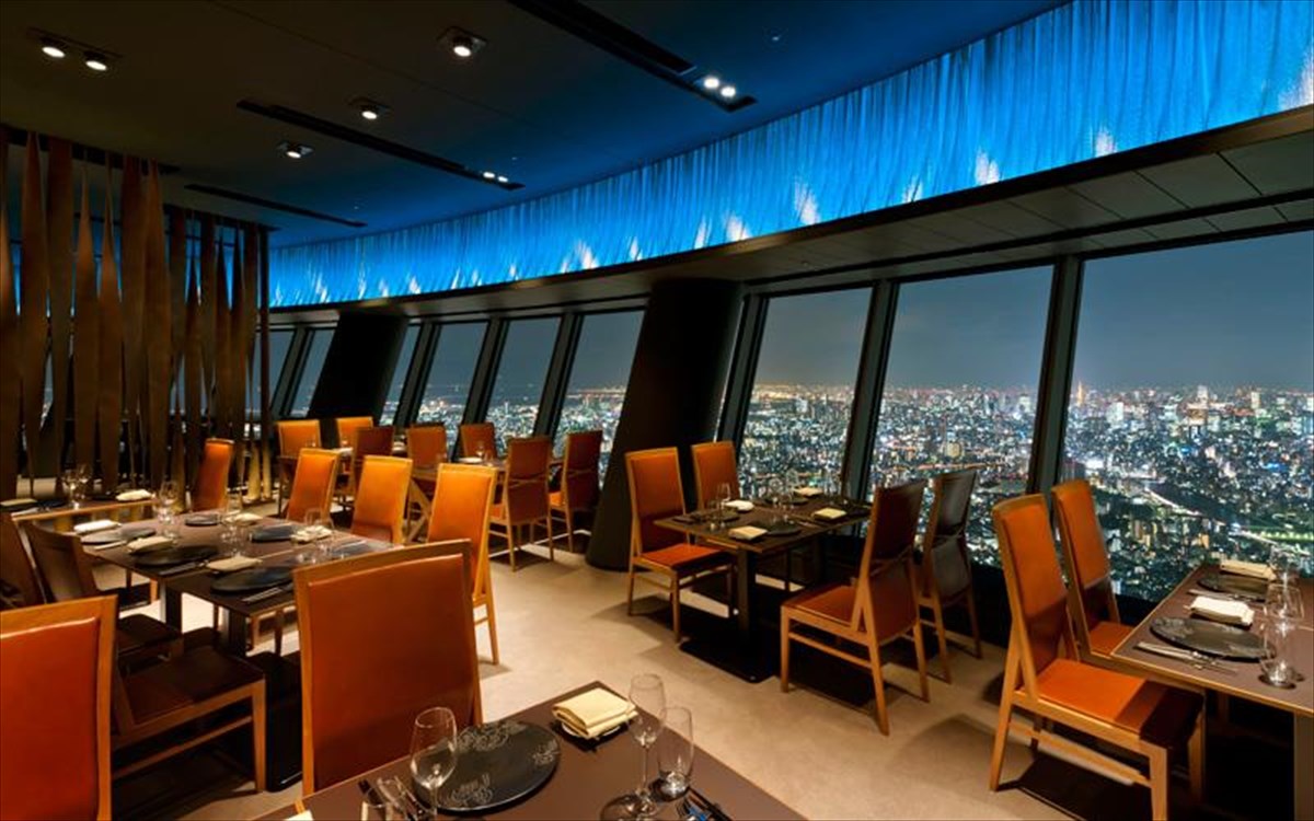 Άνοιξε το 2012 και το μενού του είναι μια ένωση της ιαπωνικής και της γαλλικής κουζίνας. Θα βρείτε περίεργα πιάτα, όπως παγωτό αχινού ή ψητό στήθος πάπιας. Στα 344 μέτρα προσφέρει εκπληκτική θέα στην πρωτεύουσα της Ιαπωνίας.