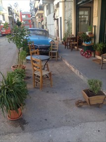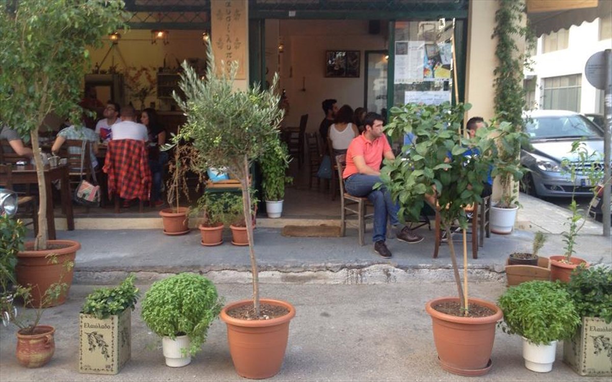 Στα στενά του Βοτανικού, σε μια περιοχή που δεν μυρίζει κι ακριβώς άνοιξη, το «Εις το Παυσίλυπον» έχει φέρει άλλον αέρα, με τις συμμετρικά τοποθετημένες γλάστρες του έξω από το μαγαζί, με τενεκέδες λαδιού που έχουν γεμίζει με λουλούδια και ένα τεράστιο γαλάζιο αυτοκίνητο του ’50 παρκαρισμένο απ’ έξω, μεγάλης συναισθηματικής αξίας, όπως μάθαμε αργότερα, αλλά και ιδιαίτερης διακοσμητικής.