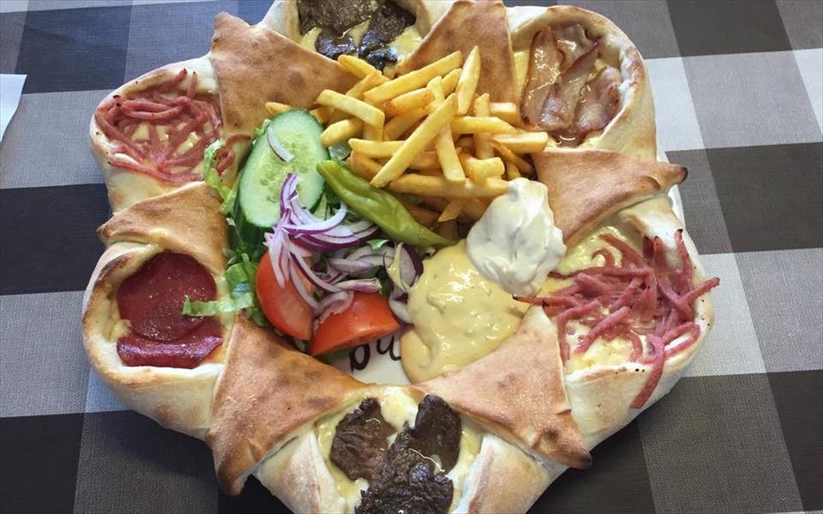 Μια νέα πίτσα που έχει σχήμα αστεριού και αποτελείται από κομματάκια από μπριζόλα, μπέικον, πεπερόνι, αγγούρι, ντομάτα, κόκκινο κρεμμύδι, μαρούλι, τυρί και πατάτες κυκλοφορεί στο διαδίκτυο και προκαλεί εντυπώσεις τις τελευταίες ημέρες, σε όσους έχουν συνηθίσει το κλασικό στυλ σπέσιαλ πίτσας.