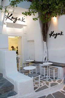 Πιο άνετο και μοντέρνο από ποτέ, το νέο σημείο Kayak διαθέτει λιτές γραμμές και αφαιρετικό design, χωρίς όμως να χάνει τις μυκονιάτικες επιρροές του. Το εσωτερικό του μίνιμαλ, σε τόνους του άσπρου, του μαύρου και του ανθρακί, δημιουργεί το ιδανικό φόντο για να αναδειχθεί η θεαματική παλέτα γεύσεων και χρωμάτων της Kayak, ενώ το εξωτερικό του είναι ό,τι πρέπει για να καθίσετε και να απολαύσετε το παγωτό σας, σε μια ατμοσφαιρική, κυκλαδίτικη αυλή.