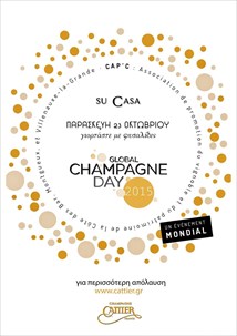 Αποτελεί ένα από τα πιο «στυλάτα» κρασιά του κόσμου, έχει γαλλική καταγωγή και οι φυσαλίδες της είναι αυτές που την κάνουν να ξεχωρίζει. Κι επειδή είναι τόσο γευστική και απολαυστική, δεν θα μπορούσε να μην έχει κι αυτή τη δική της ημέρα (23 Οκτωβρίου). Γι’ αυτό και από την Πέμπτη 22 Οκτωβρίου έως και την Κυριακή 25 Οκτωβρίου, όσοι επισκεφτούν το Su Casa θα έχουν τη δυνατότητα να απολαύσουν εμπνευσμένα cocktails με σαμπάνια Cattier σε πολύ προσιτές τιμές.