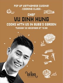 Λίγο πριν τα Χριστούγεννα, κάντε ένα γευστικό ταξίδι στην Ασία και εμπλουτίστε τις μαγειρικές σας γνώσεις με βιετναμέζικο στυλ, με ένα μάθημα μαγειρικής πλάι στον καλύτερο του είδους. Ο σεφ Βου Ντιν Χανγκ θα παραδώσει μαθήματα βιετναμέζικης κουζίνας στον κήπο του Buba (σήμερα 22/12, 13:00) και σας περιμένει όλους, προκειμένου να σας πει τα μαγειρικά μυστικά του.