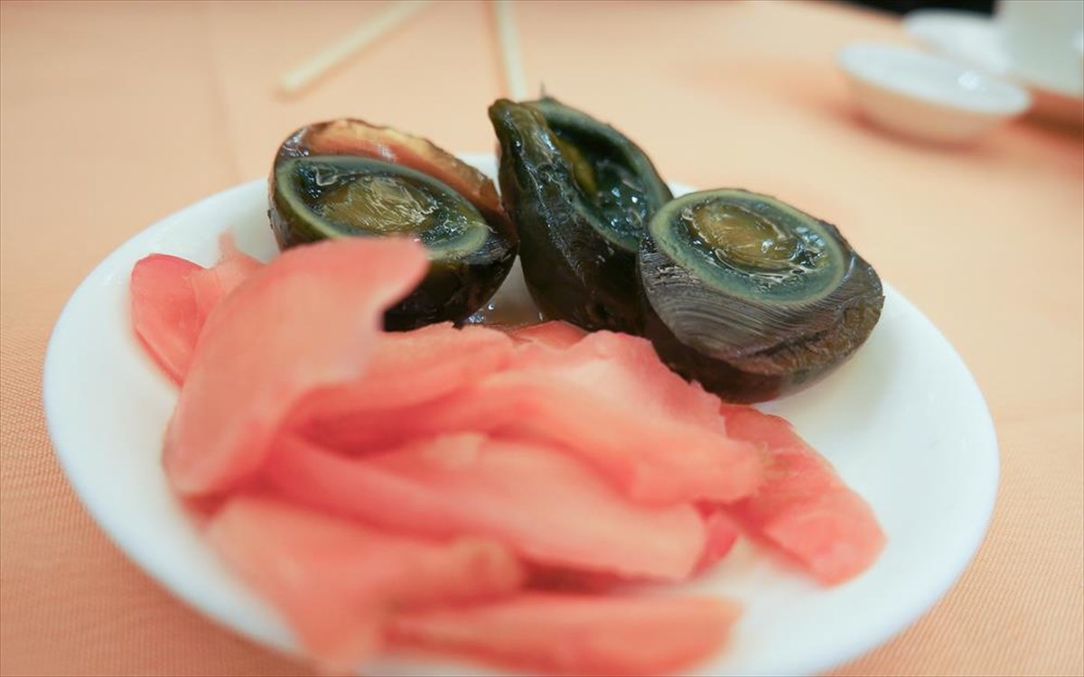 Λόγω της δυσάρεστης μυρωδιάς, η γεύση είναι απρόσμενη. Το αβγό αυτό είναι ανεπανάληπτα κρεμώδες, βελούδινο και ζουμερό, ενώ όταν καταναλώνεται με φέτες ροζ τζίντζερ, η γλυκιά και πικάντικη γεύση του προσθέτει άλλο ένα στοιχείο στο πιάτο, που δροσίζει τη γευστική παλέτα ανάμεσα στις μπουκιές.