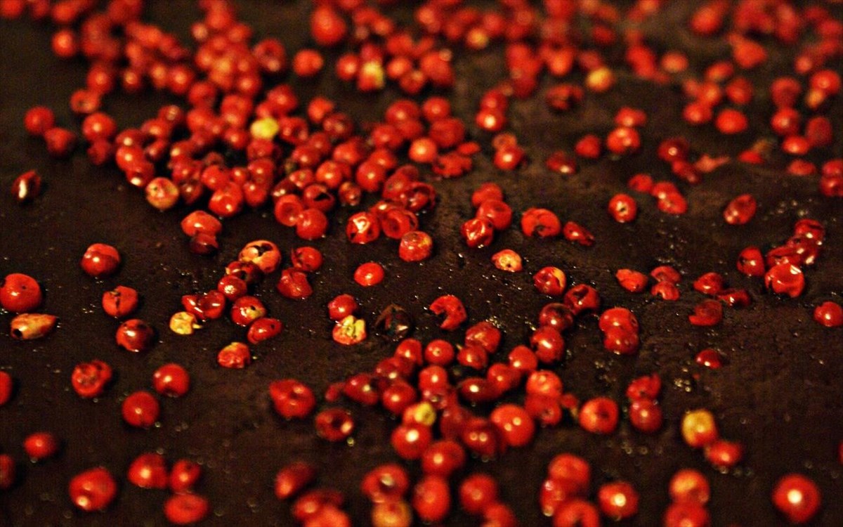 Σε μια κατσαρόλα θα βάλετε το ζαχαρούχο. Μέτρια φωτιά. Θα προσθέσετε την σοκολάτα, το αλάτι και το μαύρο πιπέρι. Θα ανακατεύετε συνεχώς με ξύλινη κουτάλα. Όταν όλα σμίξουν, θα το κατεβάσετε από τη φωτιά. Θα το απλώσετε σε ένα παραλληλόγραμμο ταψί, στο οποίο θα έχετε βάλει λαδόκολλα. Θα απλώσετε το ροζ πιπέρι και θα το πιέσετε με το χέρι σας να «ξαπλώσει» καλά στην σοκολάτα. Μόλις έρθει σε θερμοκρασία δωματίου, θα το βάλετε στο ψυγείο για δύο ώρες, να δέσει. Θα έχετε μια μαλακή σοκολάτα, ιδιαίτερα αρωματική, την οποία μπορείτε να κόψετε σε ό,τι μέγεθος θέλετε.
