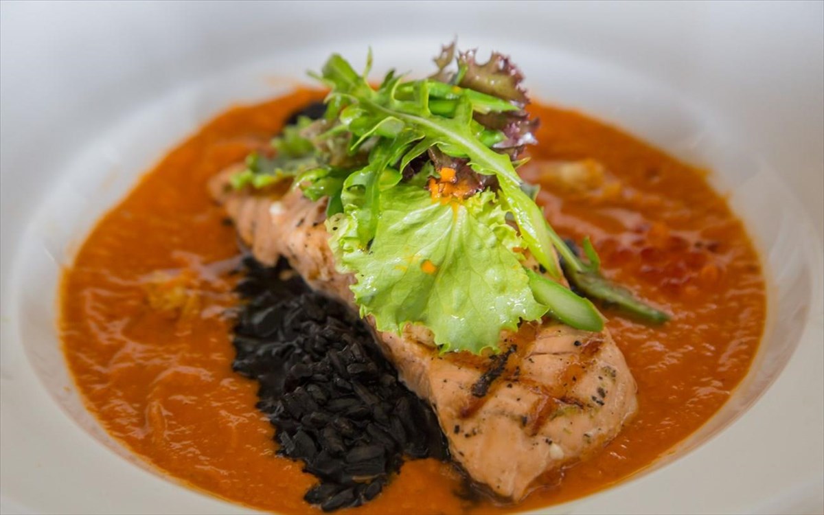 Ο ιδιαίτερος σολομός με μαύρο ριζότο