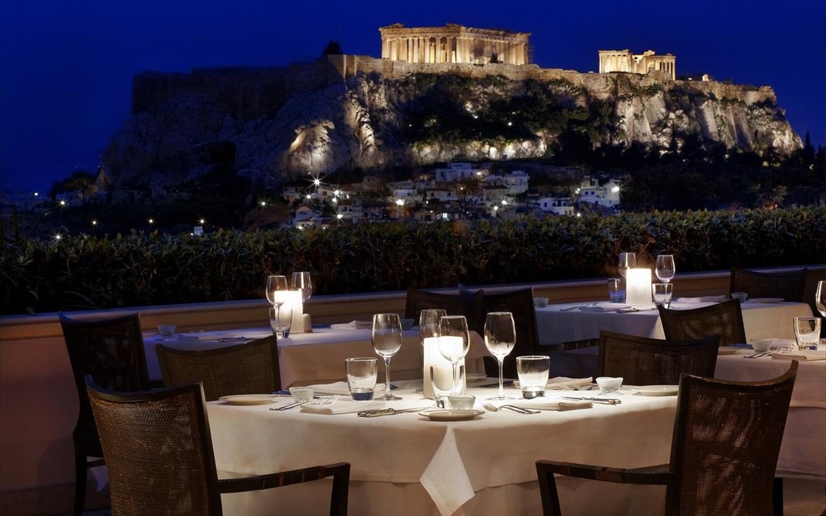 Σε μια λίστα με τα καλύτερα υπαίθρια εστιατόρια δεν θα μπορούσε να λείπει το ιστορικό Grande Bretagne στο κέντρο της Αθήνας. Εκτός από το εξαιρετικό φαγητό που συνδυάζει διεθνή και ελληνική κουζίνα, το εστιατόριο και το μπαρ στον όγδοο όροφο του ξενοδοχείου προσφέρουν μια μοναδική θέα του λόφου της Ακρόπολης. Πρόσφατα, μάλιστα, κέρδισε και διάκριση. Και το καλύτερο; Μπορούμε να πάμε χωρίς αεροπορικά.