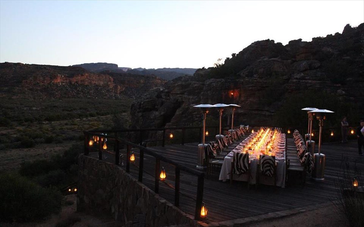 Bushman's Kloof Wilderness Reserve fb pageΣτο Bushman's Kloof Wilderness Reserve στην δυτική ακτή της Νοτίου Αφρικής βρίσκεται το υπαίθριο εστιατόριο Embers, το οποίο είναι χτισμένο σε ένα αμφιθέατρο από φυσικό αμμόλιθο. Εκεί μπορεί να ανακαλύψει κάποιος την τοπική κουζίνα υπό το ελαφρό φως κεριών, φαναριών και της σελήνης, με θέα τον μαγευτικό έναστρο ουρανό. Όχι κι άσχημα…