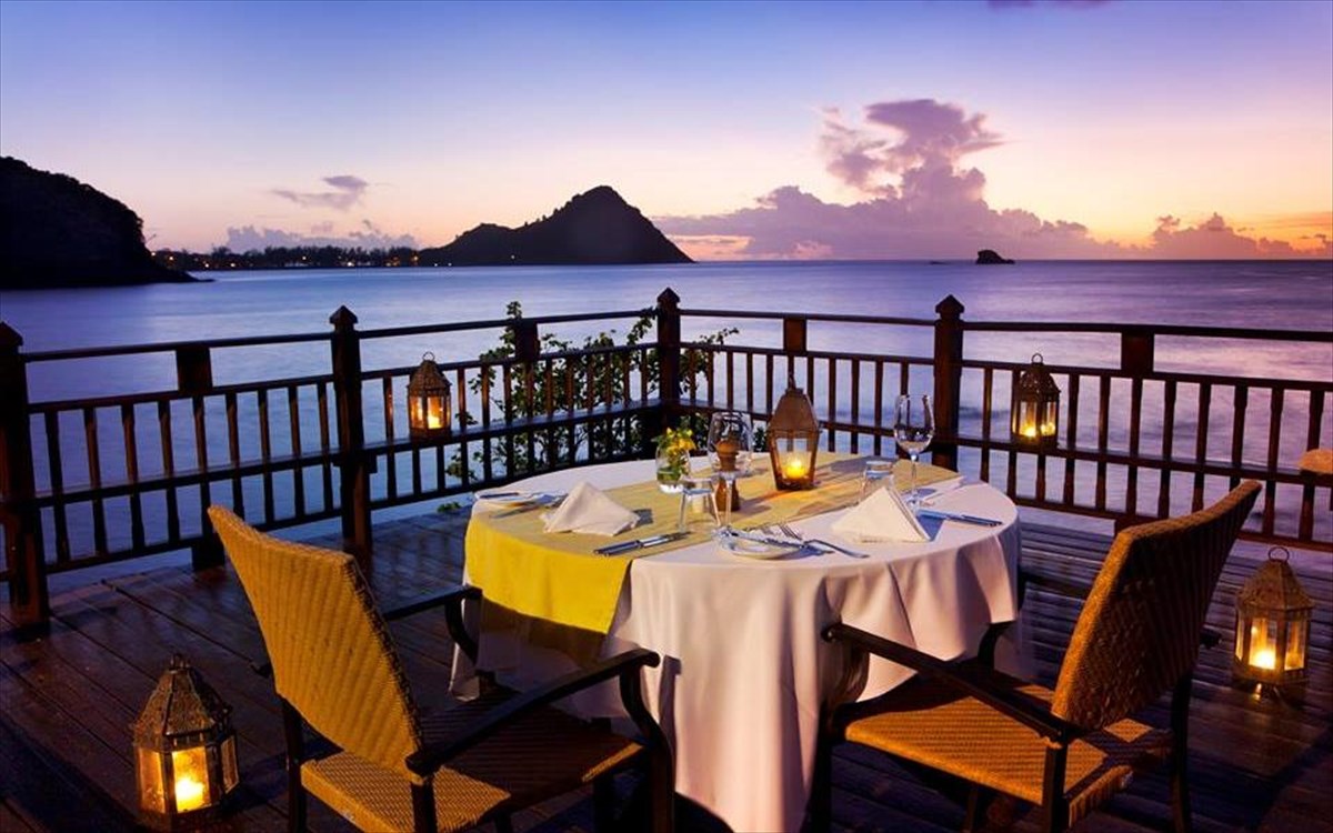 Cap Maison Resort and Spa fb pageΜια από τις πιο δραματικές, αλλά παράλληλα και ρομαντικές γαστρονομικές εμπειρίες αποτελεί το Cliff at Cap στην Σάντα Λουτσία της Καραϊβικής. Το Cliff at Cap προσφέρει ένα τραπέζι για δυο σε μια απομονωμένη εξέδρα πάνω στα βράχια, με το κύμα να σκάει στα πόδια των… τυχερών. Πρόκειται και για το μοναδικό, μέχρις στιγμής, εστιατόριο που σερβίρει σαμπάνια με zip line.