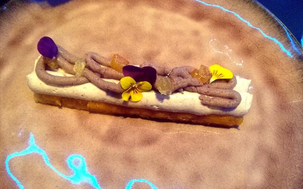 Από τα χειροποίητα γλυκά του δυσκολευτήκαμε να διαλέξουμε ανάμεσα στο εκλέρ, τον παραδοσιακό «μπαμπά», την κρέμα λεμονιού και το γλυκό κολοκύθα –μεταξύ άλλων. Γι’ αυτό είπαμε να το πάμε εποχικά και να δοκιμάσουμε το γλυκό κολοκύθας (9 ευρώ). Δεν ξέρουμε αν ήταν σωστή η επιλογή μας, σε σχέση με τους υπόλοιπους πειρασμούς, αλλά το τρυφερό μπισκότο στη βάση, η κολοκύθα κονφί και ο πουρές κάστανο, μαζί με μια φρεσκάδα εσπεριδοειδούς που τύλιγε την κάθε μπουκιά, σίγουρα ξεπέρασε τις προσδοκίες μας.