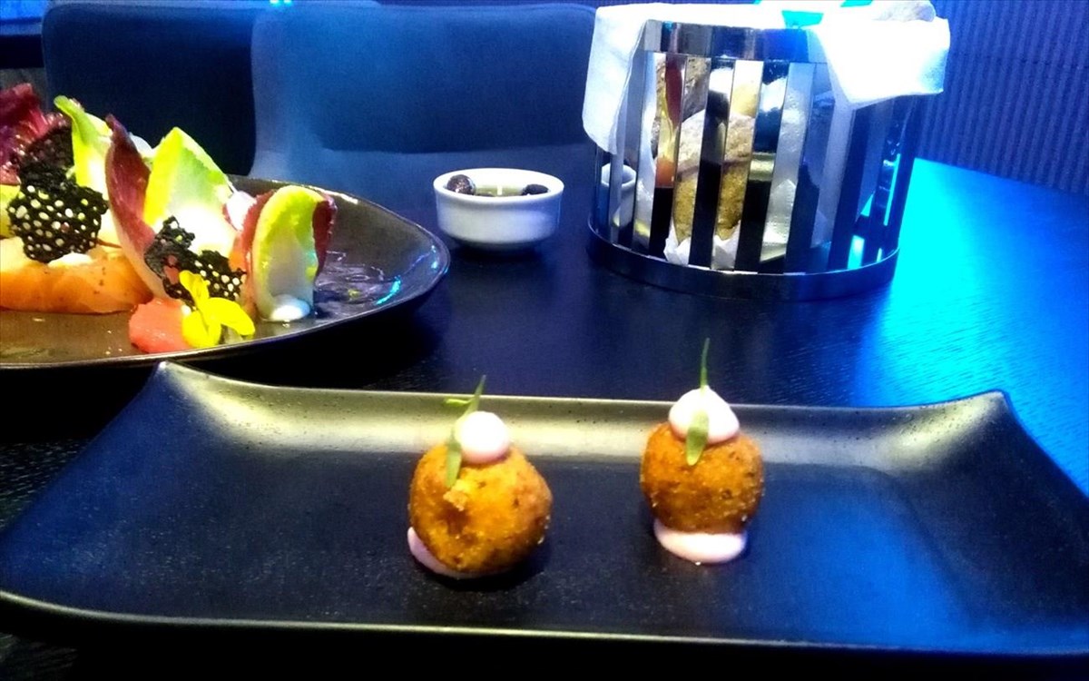 Ξεπερνώντας τις πρώτες εντυπώσεις του χώρου –ο οποίος όντως σε κάνει να στριφογυρνάς το κεφάλι σου με μισάνοιχτο στόμα για αρκετή ώρα- διαπιστώνεις την ανοιχτή κουζίνα και το bar που βρίσκονται στο ισόγειο και καταλαβαίνεις ότι ήρθε η ώρα να πιεις ή να φας κάτι. Εμείς επιλέξαμε το δεύτερο, μιας και γνωρίζαμε ότι ο «αστεράτος» γάλλος σεφ, Alain Parodi, έχει την επιμέλεια του μενού, το οποίο δεν ξέραμε αν θα έκρυβε γρίφους, αλλά κάτι μας έλεγε ότι θα ήταν ιδιαίτερο.