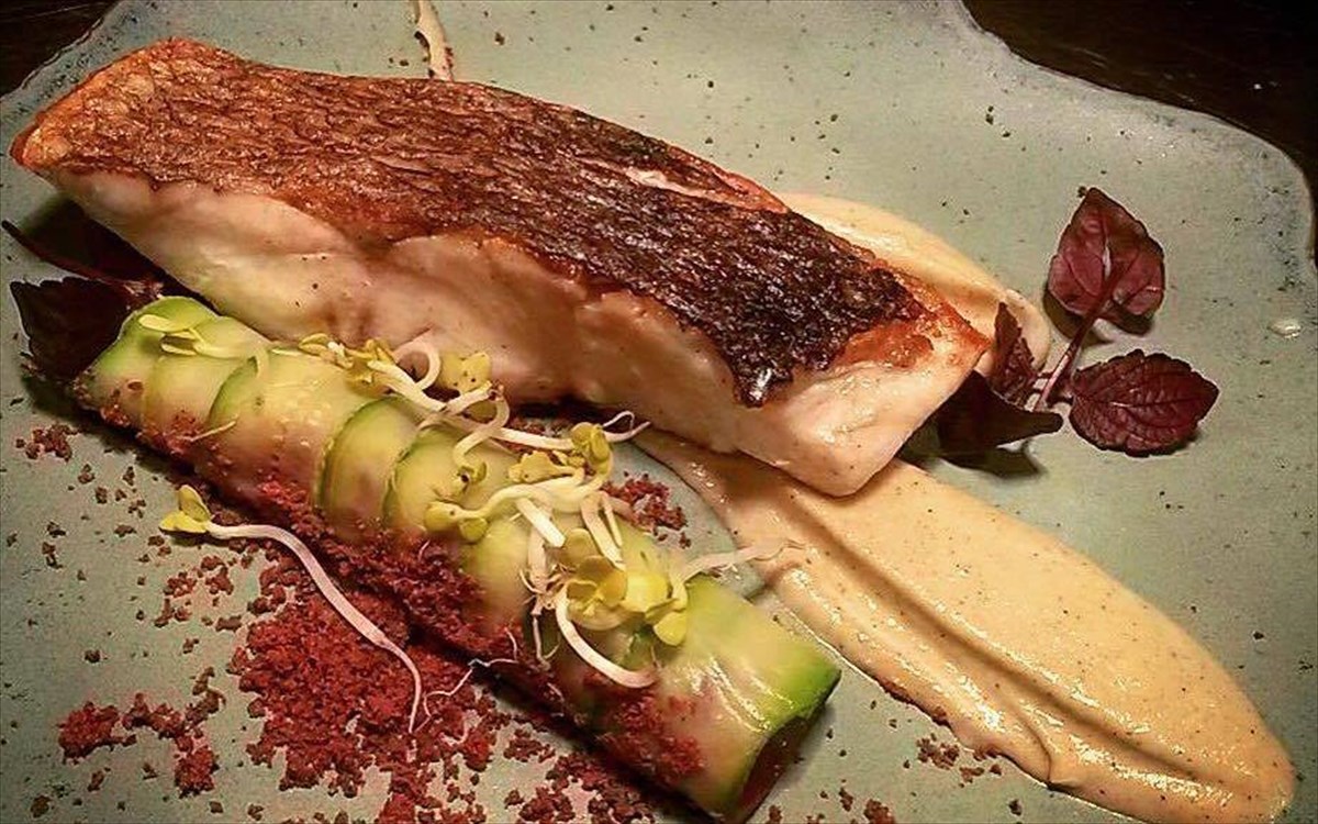 Το λαβράκι με μελιτζάνα και κολοκύθι