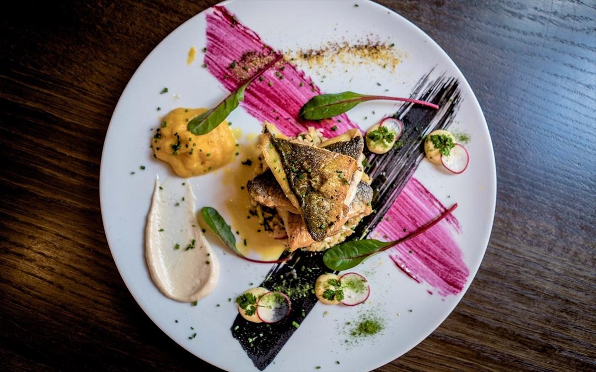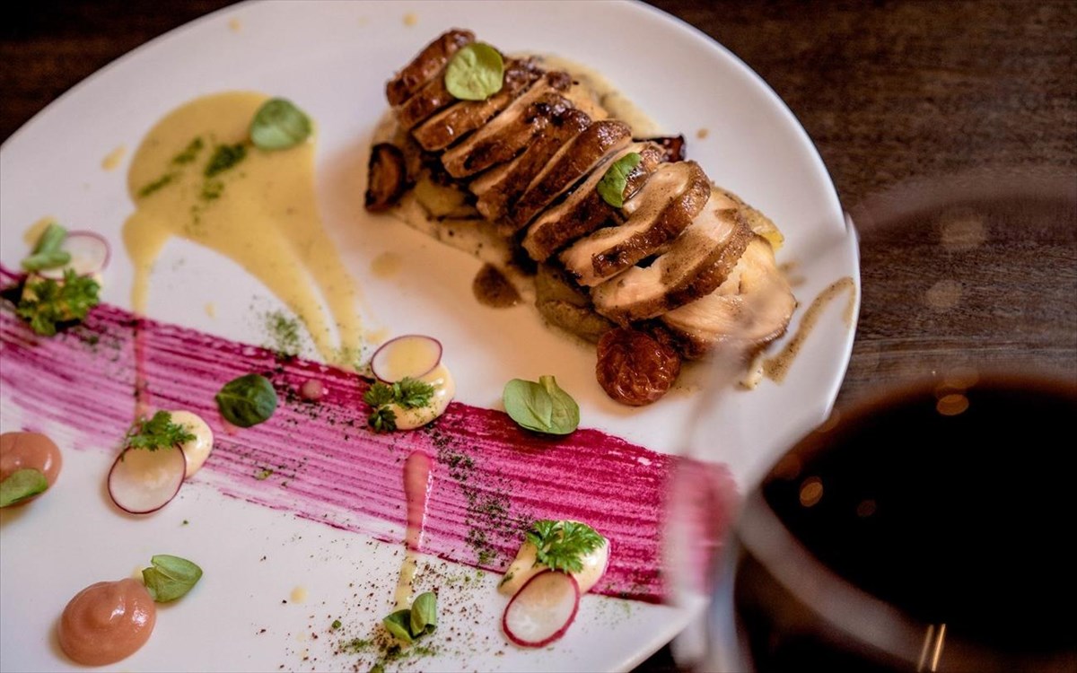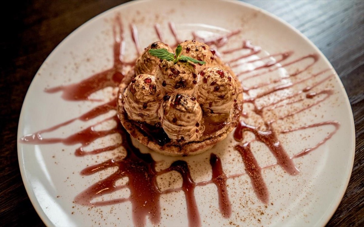 Δύο νέες προσθήκες θα συναντήσετε και στα γλυκά του εστιατορίου με την παραδοσιακή μανιάτικη γαλατόπιτα σε ελεύθερη μετάφραση, να κλέβει τις εντυπώσεις, αφού αγκαλιάζει το βύσσινο και ολοκληρώνεται με καμένη μαρέγκα, ενώ στο ίδιο ύφος αποδόμησης κινούνται και οι δίπλες, παραδοσιακό μανιάτικο γλυκό για τις στιγμές χαράς, που παρουσιάζονται σε ποτήρι με κρέμα αρωματισμένη με θυμαρίσιο μέλι και καρύδια.
