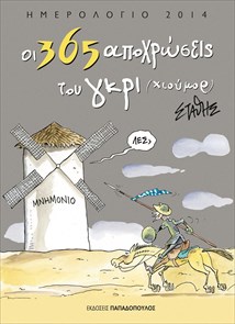 Η περιβόητη ερωτική τριλογία «Πενήντα αποχρώσεις του γκρι» της Ε.L. James ενέπνευσε στον Στάθη τον νέο τίτλου του σατιρικού ημερολογίου του «Οι 365 αποχρώσεις του γκρι (χιούμορ)» (εκδ. Παπαδόπουλος). Στο εξώφυλλο, ένας Δον Κιχώτης κρατώντας την ελληνική σημαία κατευθύνεται προς τον ανεμόμυλο του μνημονίου. Χωρίς (έστω και μαύρο) χιούμορ δεν βγαίνει η πραγματικότητα και το κοφτερό πενάκι του Στάθη αποτελεί εγγύηση…