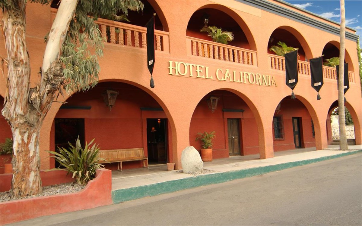 Το ξενοδοχείο, το οποίο βρίσκεται στην πόλη Todos Santos στην περιοχή Baja του Μεξικό, άνοιξε τη δεκαετία του 1950 με το όνομα «Hotel California». Στη συνέχεια άλλαξε αρκετές φορές όνομα, μέχρι που το αγόρασε ένα ζευγάρι από τον Καναδά και επανάφερε το αρχικό όνομα.