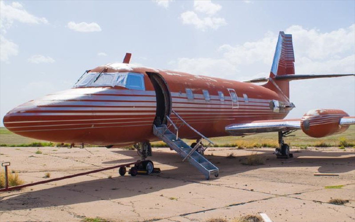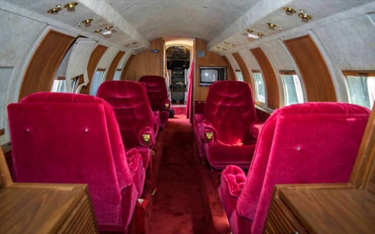 GWS AuctionsΤο σκάφος όμως θα χρειαστεί αρκετή δουλειά για να πετάξει ξανά, αφού δεν έχει μηχανές και το πιλοτήριο χρειάζεται συντήρηση. Η διακόσμηση του εσωτερικού όμως σχεδιάστηκε από τον ίδιο τον Elvis Presley και περιλαμβάνει κόκκινα βελούδινα καθίσματα και ένα κόκκινο χαλί. Το Jetstar του Presley βρίσκεται σταθμευμένο τα τελευταία 30 χρόνια σε έναν μικρό αεροδιάδρομο στο Roswell (όπου το 1947 υποτίθεται ότι κατέπεσε ένα UFO).