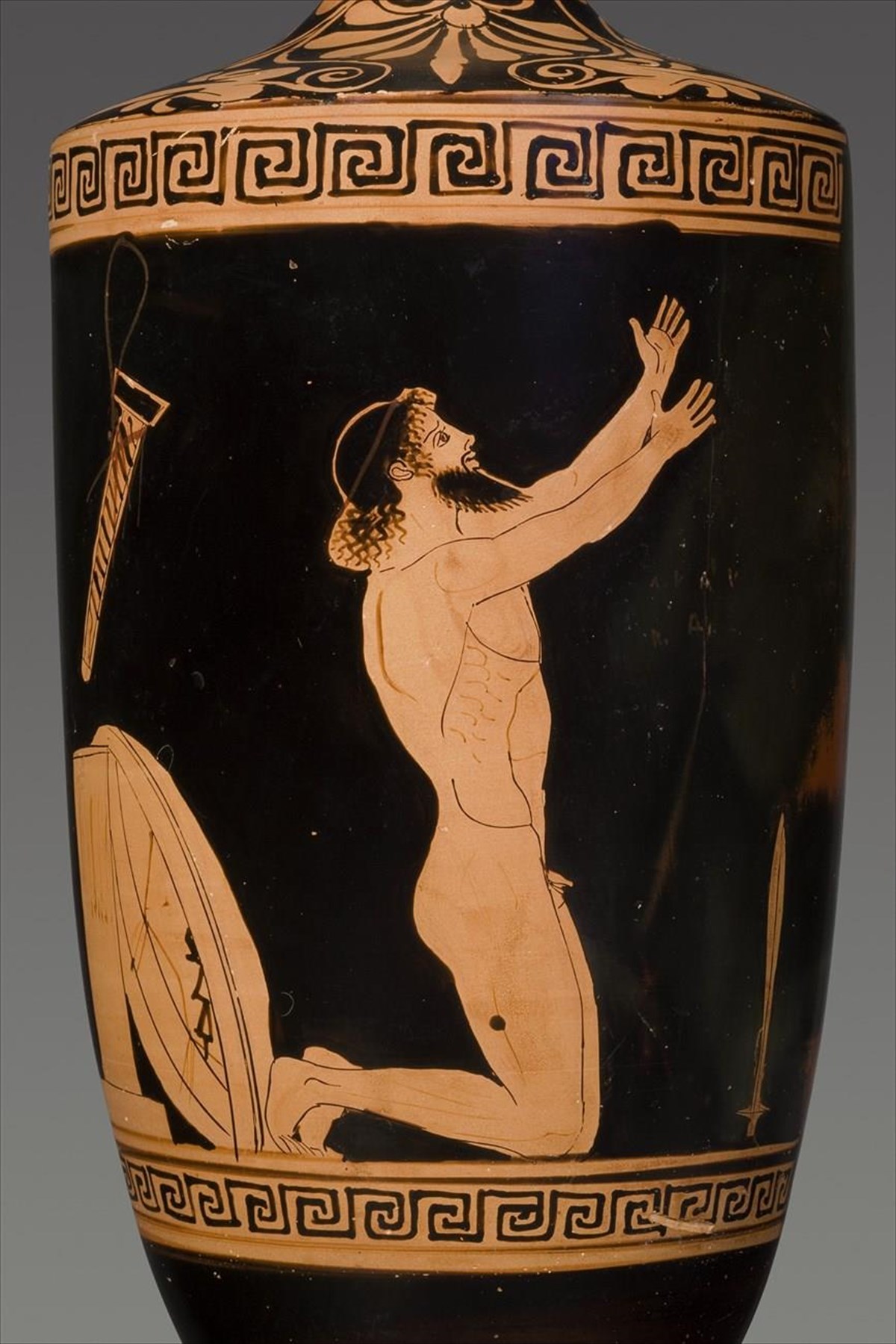 Λήκυθος με παράσταση της αυτοκτονίας του Αίαντα, περ. 460 π.Χ., Πηλός, ερυθρόμορφο, αποδίδεται στον Ζωγράφο του Αλκίμαχου, Αττική, Βασιλεία, Antikenmuseum und Sammlung Ludwig