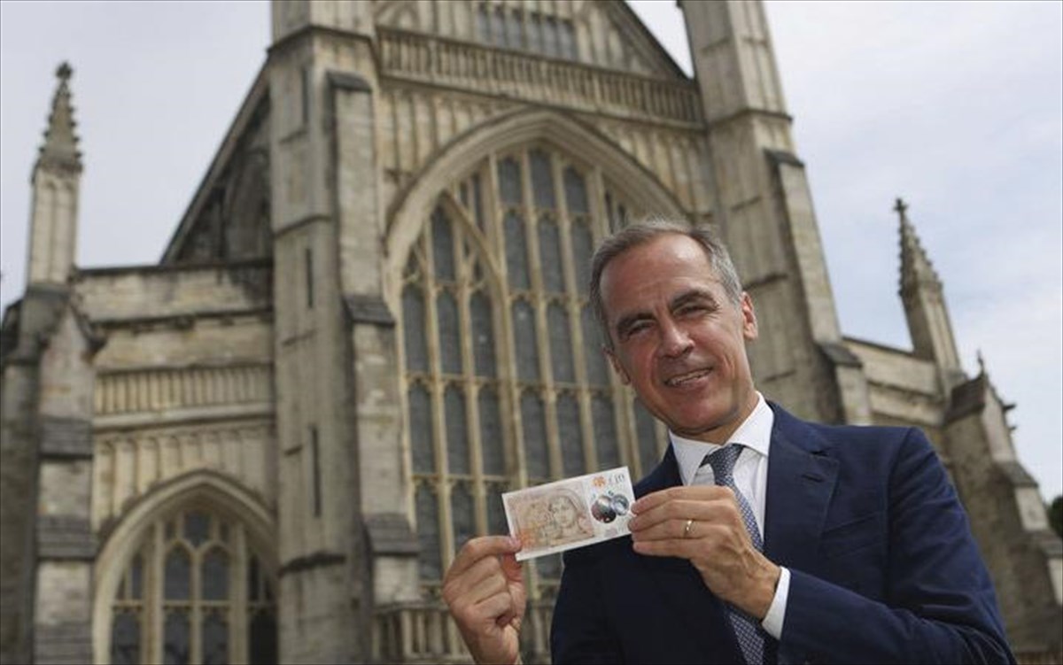 AP / Steve ParsonsΟ Διοικητής της Τράπεζας της Αγγλίας Mark Carney παρουσιάζει το νέο χαρτονόμισμα των 10 λιρών με την Jane Austen.