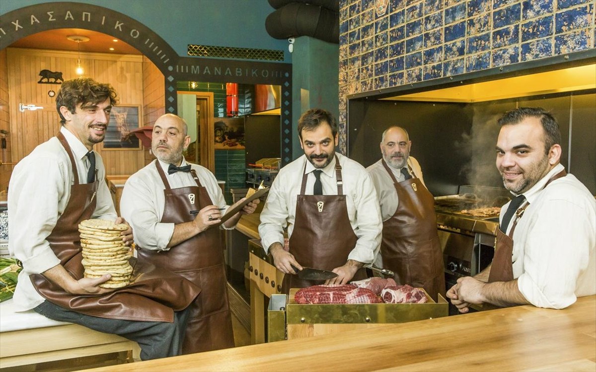Η ιδιαιτερότητα είναι ότι οι 3 βασικοί τροφοδότες (αρτοποιείο, κρεοπωλείο και μανάβικο) βρίσκονται o ένας δίπλα στο άλλο σε ένα νεοκλασικό κτίριο του Μεσοπολέμου, δημιουργώντας μια εσωτερική αγορά, όπου λειτουργούν αυτόνομα, αλλά και συμπληρωματικά, παρέχοντας τις πρώτες ύλες για το τελικό προϊόν στο κεντρικό μαγαζί, την ψησταριά.