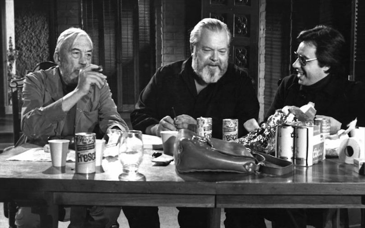 Οι πρωταγωνιστές του «The Other Side of the Wind» John Huston και Peter Bogdanovich συζητούν με τον Orson Welles.